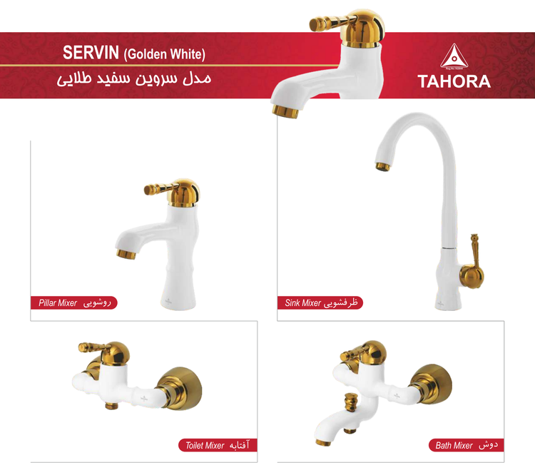 ست شیرآلات طهورا مدل سروین سفید طلایی(ارسال رایگان)