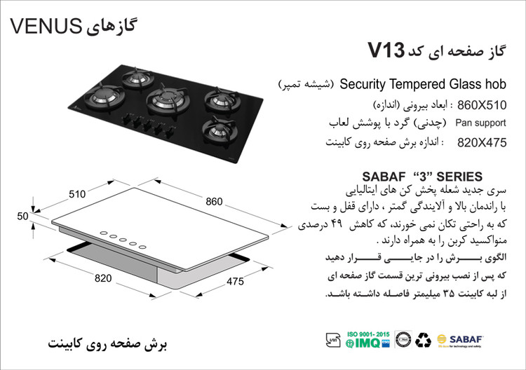 | ندارد | قابل نصب روی کابینت عرض 50 |