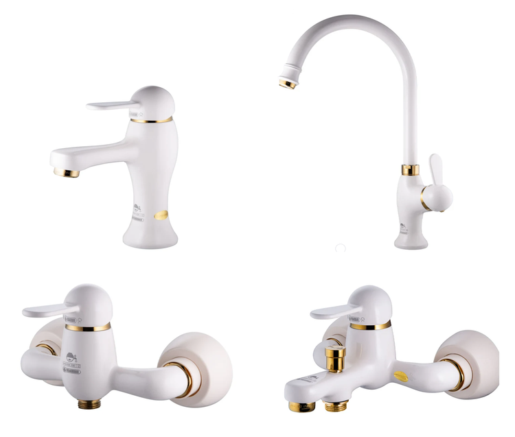 ست شیرآلات درخشان مدل هوکا سفید طلایی