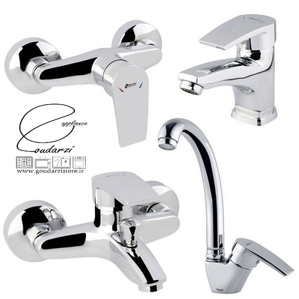 - ست چهارتکه شامل: روشویی پایه کوتاه، شیر توالت، شیر حمام، شیر ظرفشویی