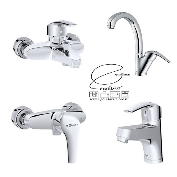 - ست چهارتکه شامل: روشویی پایه کوتاه، شیر توالت، شیر حمام، شیر ظرفشویی