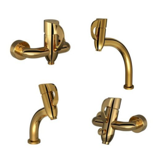 - ست چهارتکه شامل: روشویی پایه کوتاه، شیر توالت، شیر حمام، شیر ظرفشویی