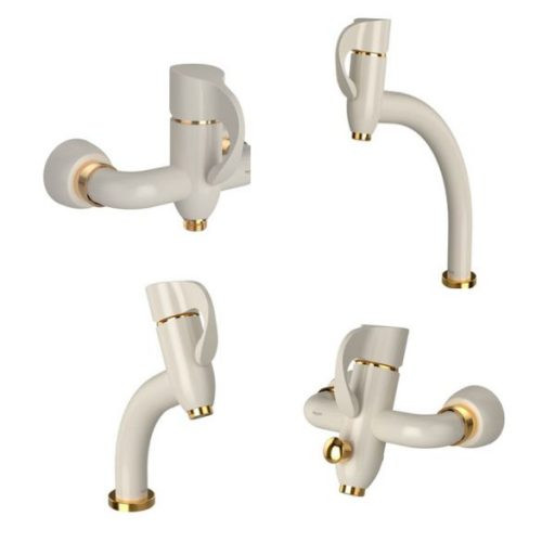 - ست چهارتکه شامل: روشویی پایه کوتاه، شیر توالت، شیر حمام، شیر ظرفشویی