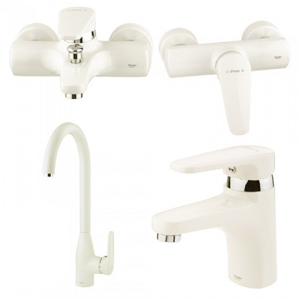 - ست چهارتکه شامل: روشویی پایه کوتاه، شیر توالت، شیر حمام، شیر ظرفشویی