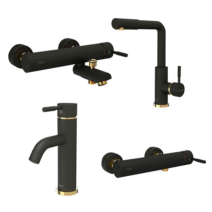 ست شیرالات شودر مدل مارینو مشکی طلایی