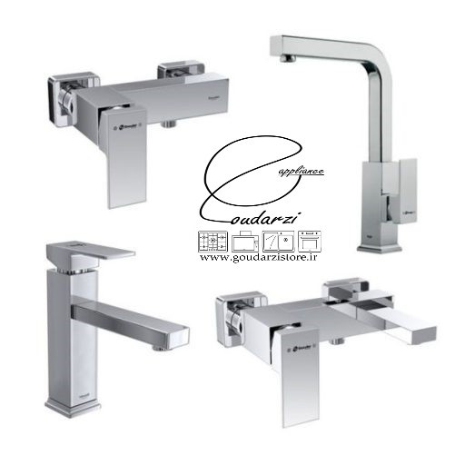 - ست چهارتکه شامل: روشویی پایه کوتاه، شیر توالت، شیر حمام، شیر ظرفشویی