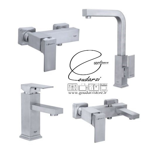 - ست چهارتکه شامل: روشویی پایه کوتاه، شیر توالت، شیر حمام، شیر ظرفشویی