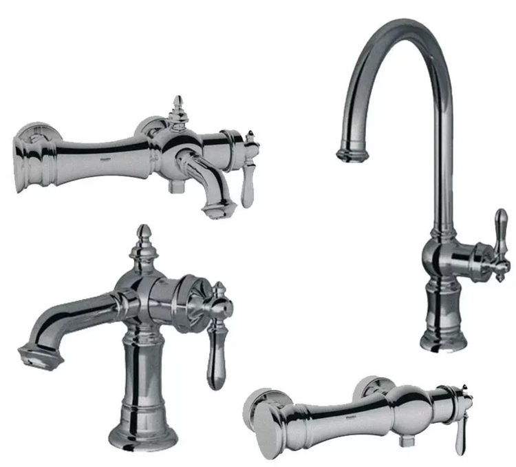 - ست چهارتکه شامل: روشویی پایه کوتاه، شیر توالت، شیر حمام، شیر ظرفشویی