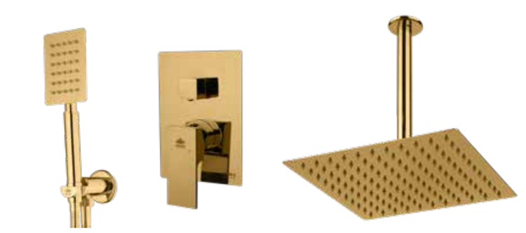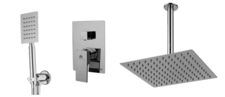 سر دوش ثابت+لوله سقفی+گوشی+دسته+شلنگ+پایه برنجی شلنگ+صفحه