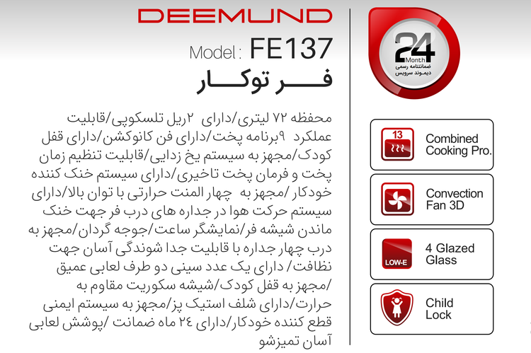 🌐دارای سیستم حرکت هوا در جداره های درب فر جهت خنک ماندن شیشه فر