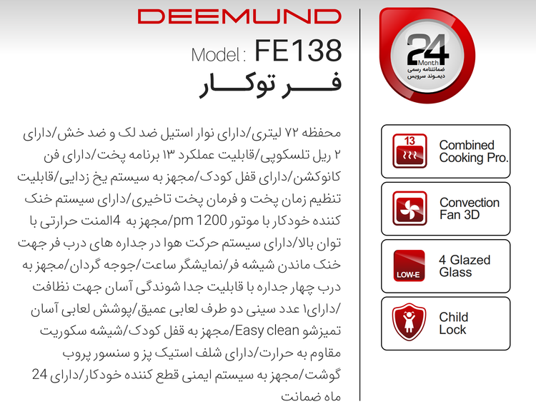🌐دارای سیستم حرکت هوا در جداره های درب فر جهت خنک ماندن شیشه فر