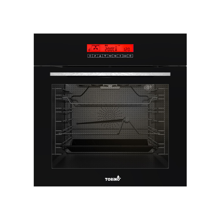 فر توکار برقی تورینو پلاس مدل TO1 به رنگ مشکی است و جنس سطح بیرونی ان شیشه سکوریت میباشد . شیشه سیکوریت سه لایه فضای داخلی فر را ایزوله میکند و کیفیت پخت غذا را بالا میبرد . ابعاد فیزیکی فر برقی تورینو پلاس (60*60*55)سانتی متر است . صفحه کنترل لمسی تاچلس در بالای فر ظاهری مدرن به این محصول بخشیده است . دسته استیل تعبیه شده بر روی درب فر