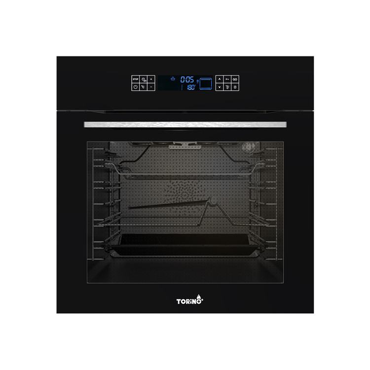 اندازه فر برقی توکار تورینو پلاس کد TO3 (60*60*55) سانتی متر است و داخل کابینت نصب میشود . رنگ شیشه بیرونی این فر سیاه است و با انواع دکوراسیون ها همخوانی دارد . ظرفیت فر 70 لیتر است . شیشه سیکوریت مستحکمی که در ساخت فر توکار تورینو پلاس بکار رفته فضای داخل فر را ایزوله میکند و از گرم شدن خانه حین فرایند پخت جلوگیری میکند . صفحه کنترل لمسی تاچلس با کلید سلکتوری در بالای فر ظاهری مدرن به این محصول بخشیده است . با کمک قابلیت تاچ لس میتوانید از دور و با حرکت دست برنامه های پخت را انتخاب کنید یا تایم پخت را تنظیم کنید . صفحه نمایشگر در بالای فر برنامه پخت و دمای داخل فر را نمایش میدهد . درب متحرک سه لایه به اسانی به سمت بیرون باز میشود و با جک به بدنه متصل است . دسته استیل تعبیه شده بر روی درب فربه گونه ای طراحی شده که حین روشن بودن فر دسته داغ نشود و بتوان براحتی درب را باز نمود . محل قرارگیری سیخ جوجه گردان در وسط فر تعبیه شده و سیخ جوجه گردان به وسیله موتور چرخانده میشود ، تا تمام قسمت های مرغ به صورت یکدست پخته شود .برای گردش هوا داخل کابین و یکدست پختن غذا در، فر فن های کانوکشن در بدنه ان تعبیه شده است . در ساخت این فر چهار المنت بکار رفته است .