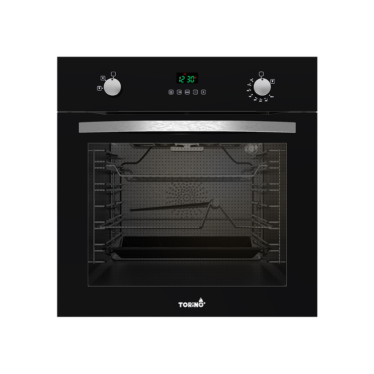 فر برقی توکار تورینو پلاس مدل TO4 با ابعاد (60*60*55) سانتی متر تولید شده است . درب سه لایه از جنس شیشه سیکوریت فضای داخل فر را ایزوله میکند و انتقال حرارت بین فر و خانه را به حداقل میرساند که از گرم شدن خانه حین روشن بودن فر جلوگیری میکند . شیشه بیرونی این فر به رنگ سیاه است و با تمام دکوراسیون ها همخوانی دارد . شیشه سیکوریت های بکار رفته در تولید این فر وارداتی میباشد و بسیار محکم است و در مقابل ضربه های متوسط نمیشکند . صفحه کنترل لمسی تاچ با کلید سلکتوری در بالای فر ظاهری مدرن به این محصول بخشیده است . صفحه نمایشگر در بالای فر برنامه پخت و دمای داخل فر را نمایش میدهد . درب متحرک سه لایه به اسانی به سمت بیرون باز میشود و با جک به بدنه متصل است . دو عدد سرشعله پیچی در سمت چپ و راست مانیتور برای تنظیم کردن درجه حرارت و روشن کردن گریل قرار گرفته است . دسته استیل تعبیه شده بر روی درب فربه گونه ای طراحی شده که حین روشن بودن فر دسته داغ نشود و بتوان براحتی درب را باز نمود . محل قرارگیری سیخ جوجه گردان در وسط فر تعبیه شده و سیخ جوجه گردان به وسیله موتور چرخانده میشود ، تا تمام قسمت های مرغ به صورت یکدست پخته شود .برای گردش هوا داخل کابین و یکدست پختن غذا در، فر فن های کانوکشن در بدنه ان تعبیه شده است .