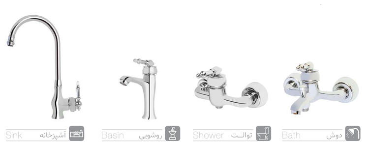- تعداد قطعات: ۴ عدد شامل شیر آفتابه، شیر روشویی، شیر سینک و شیر دوش