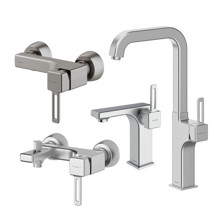 - ست چهارتکه شامل: روشویی پایه کوتاه، شیر توالت، شیر حمام، شیر ظرفشویی