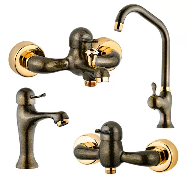 ست شیرآلات کاویان مدل تیدا زیتونی طلایی
