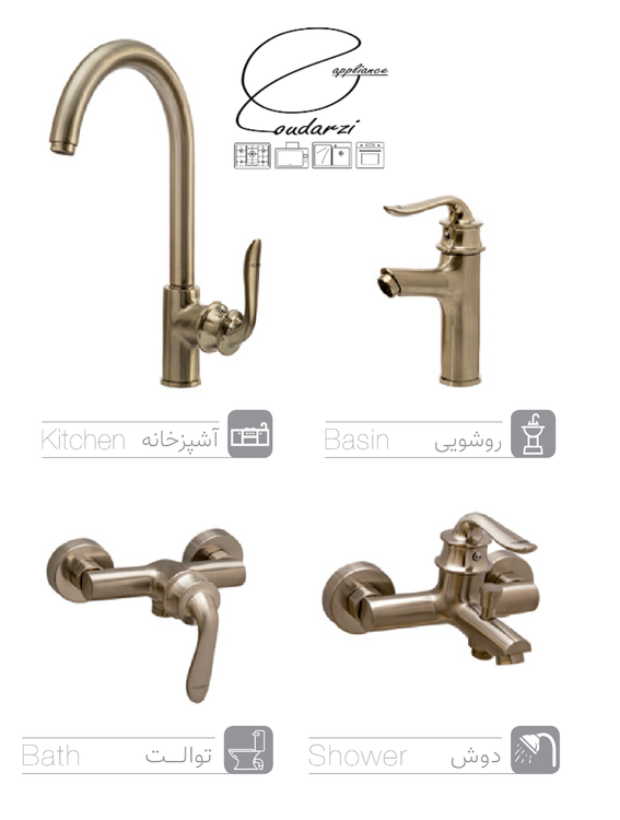 - تعداد قطعات: ۴ عدد شامل شیر آفتابه، شیر روشویی، شیر سینک و شیر دوش
