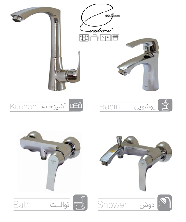 - تعداد قطعات: ۴ عدد شامل شیر آفتابه، شیر روشویی، شیر سینک و شیر دوش
