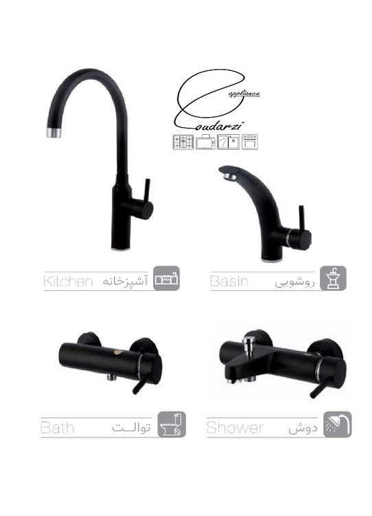 شیرالات اهرمی مدل: هکتور رنگ: مشکی جنس بدنه: آلیاژ برنج تعداد قطعات: ۴ عدد شامل شیر آفتابه، شیر روشویی، شیر سینک و شیر دوش روکش: پوشش PVC مجهز به آبفشان آبدهی ۱۲ لیتر در دقیقه دارای 4 عدد شلنگ پیسوار