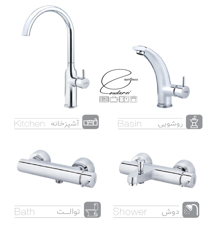 - تعداد قطعات: ۴ عدد شامل شیر آفتابه، شیر روشویی، شیر سینک و شیر دوش