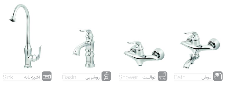 - تعداد قطعات: ۴ عدد شامل شیر آفتابه، شیر روشویی، شیر سینک و شیر دوش