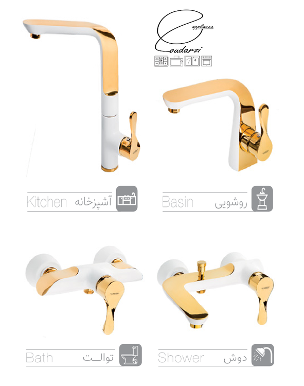 ست شیرآلات کیسر مدل کارن شیری طلایی