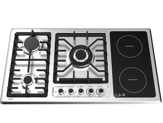 - این محصول 5 شعله ( 3 شعله گازی , 2 شلعه المنتی با منبع انرژی برق )
